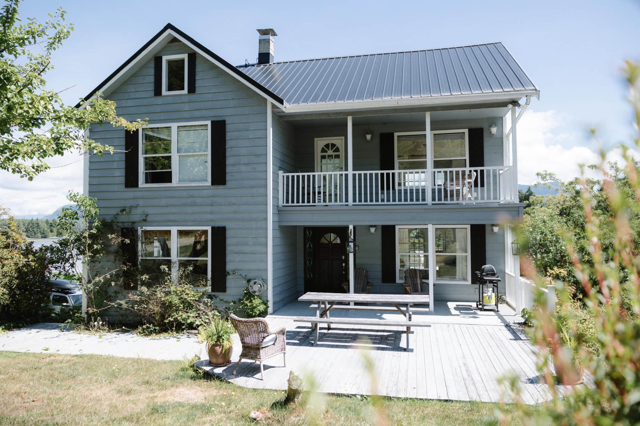 There are two private decks, one with a Private hot tub for guests! A beautiful yard to enjoy apple trees, cherry trees, blackberries and salmon berries. Launch your paddle board / canoe / kayak at high tide and explore the inlet!